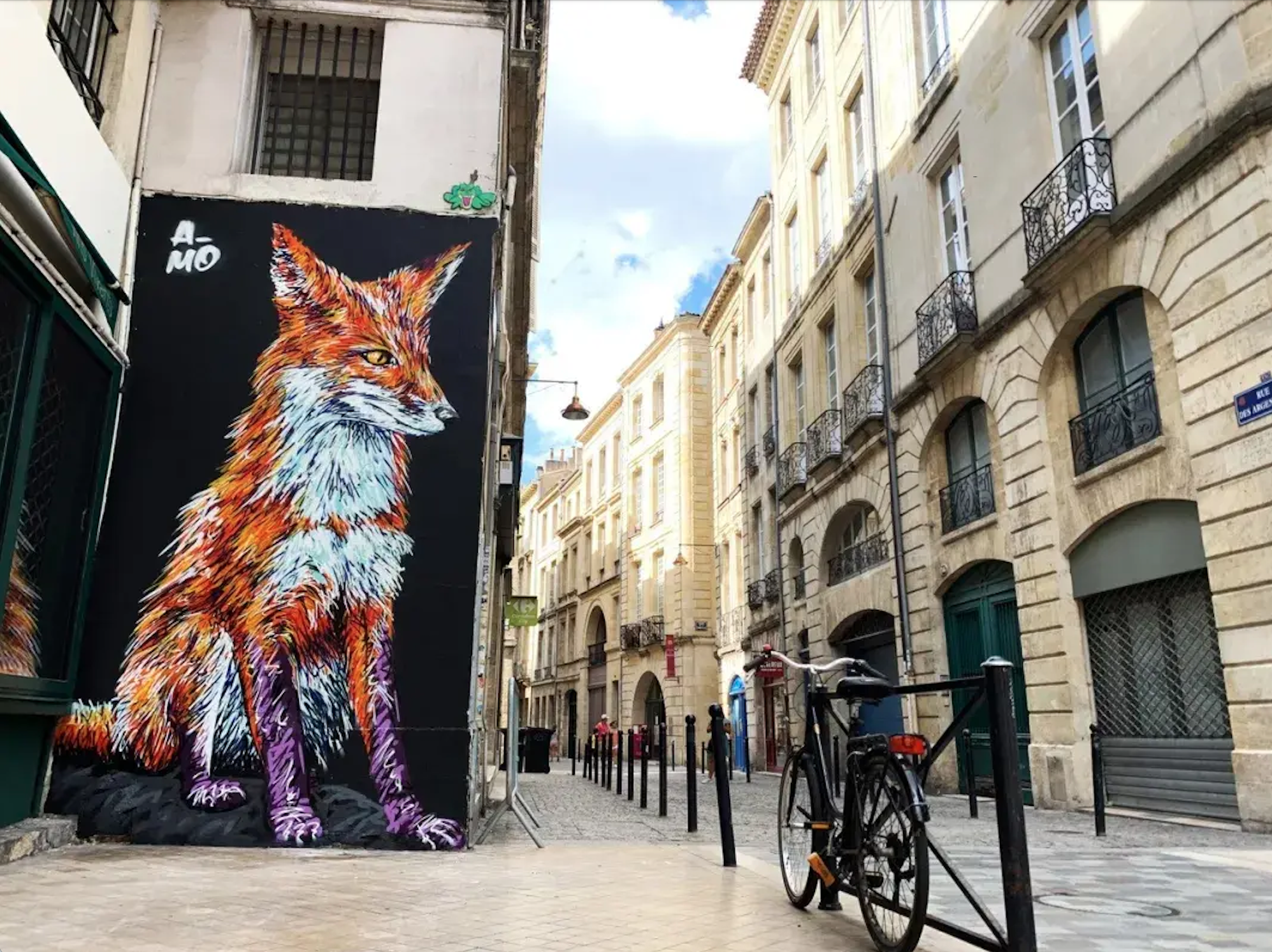 À Bordeaux, difficile de passer à côté des œuvres d’A-MO. Ses animaux surgissent sur les murs et dans des coins inattendus, transformant la ville en véritable safari urbain. Singes, reptiles, oiseaux ou créatures marines accompagnent les promeneurs et attirent autant les regards que les objectifs des amateurs de street art.